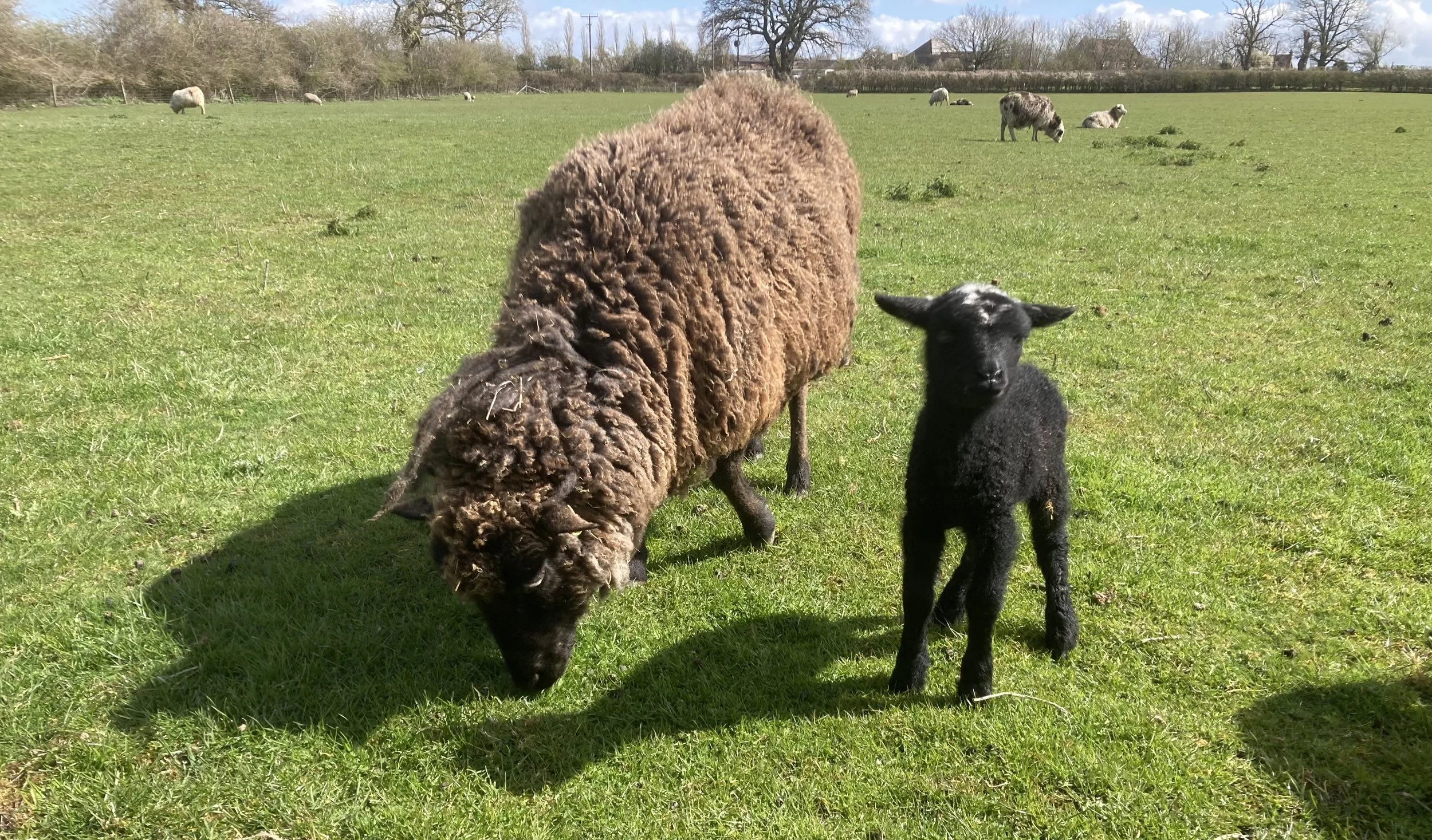 Abacus Hester with her ewe lamb , one of a twin, the other a ram lamb